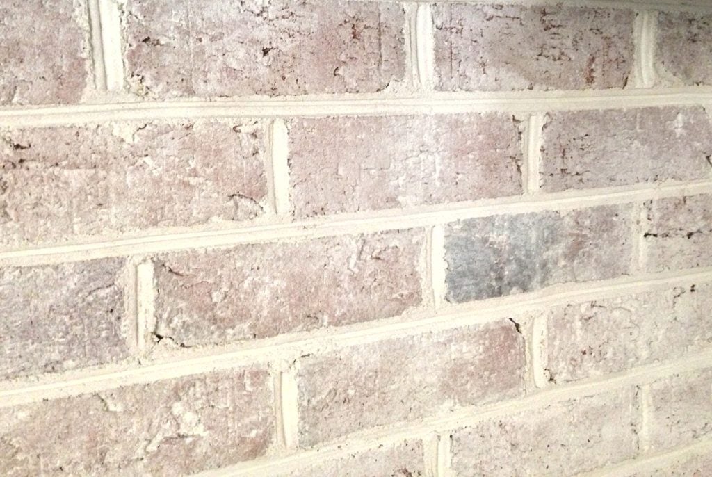 First, I wiped down the brick to make sure there weren’t cobwebs and old soot all over it – just a good once over with an old rag did the trick. However, depending on the condition of your brick, you may want to use a scrub brush or wire brush to remove any loose material or dirt.