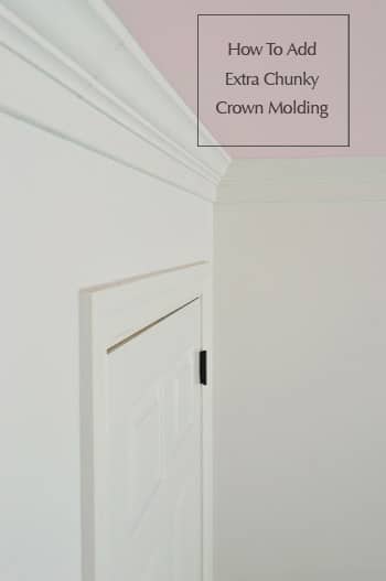 Back to me and my chunky crown. Around a month and a half ago when we painted her walls and ceiling, we didn’t bother to cut in where the white walls meet the pink ceiling so a thin yellowed line of paint remained. Why? Because I planned to install crown molding right afterwards. Soft emphasis on “right afterwards.”