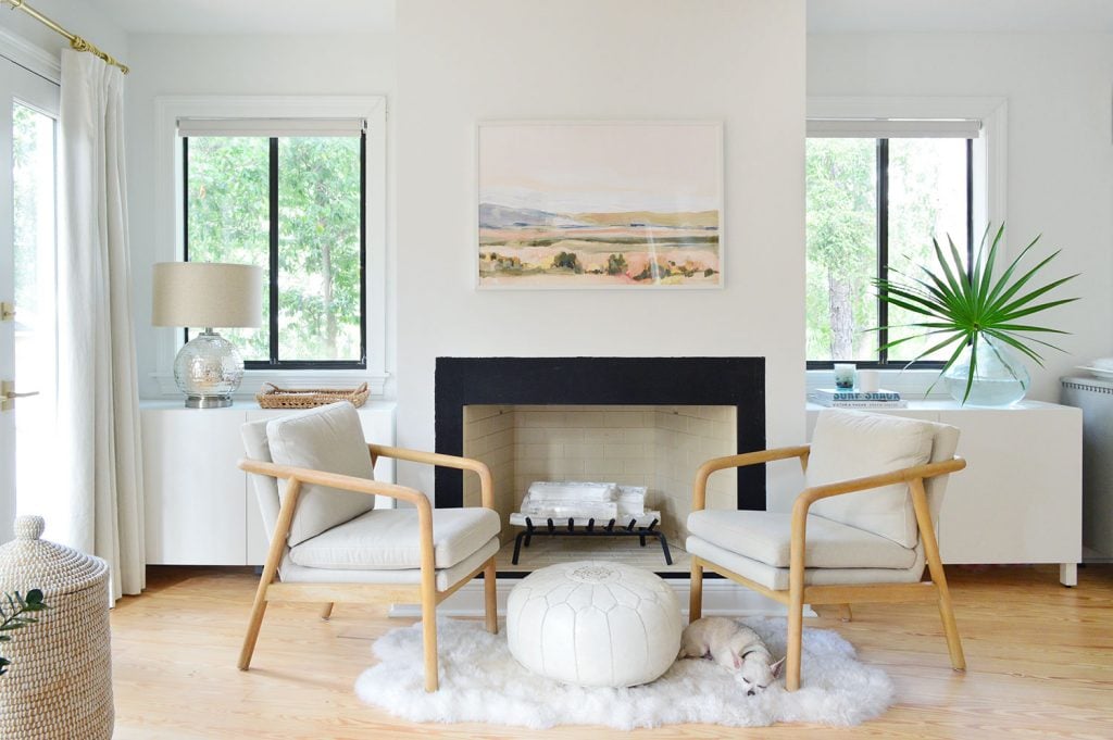 These are the exact same 47″ Bestå cabinets that we used upstairs, just separated on either side of the fireplace (instead of joined with that centered leg and bracket system). Again, we lucked out that they were pretty much the perfect size that we needed to fill these spaces (even the height was great for under the window).