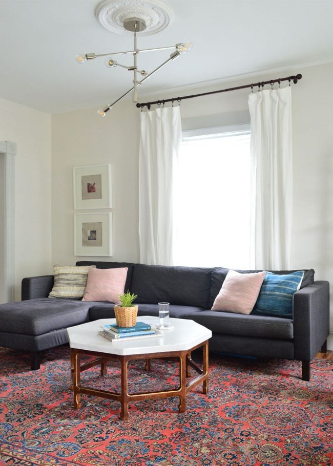 And it was a DIY that was SO MUCH CHEAPER than the high end alternative, so three cheers for that. Oh and people who follow our InstaStories know we’ve switched out the rug in here for this rug since taking these pics, so there will be a post all about that (and the other dining room tweak we’ve made) coming up in a week or two. But back to the coffee table.