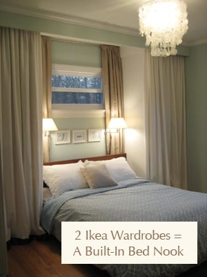I have to say, I’m totally loving your site, and this bedroom make over is Over The Top! I can’t get over how you transformed this room with Ikea wardrobes, fabric, paint and a header (okay, maybe I’m over simplifying here)for a gorgeous custom look!