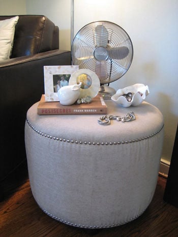 Love it! The nail heads are great and it looks wonderful in your room. I’ve been coveting one of those white Moroccan pouf ottomans in leather, but so far no luck finding any on sale (that don’t look really cheap).