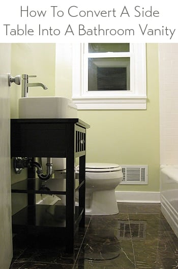 Good question Kara! Our old vanity was actually only 30″ tall, so the new one is actually an improvement because although the night table is also around 30″ tall, with the raised sink and the faucet on top it’s a lot closer to counter-height. Very comfortable indeed!