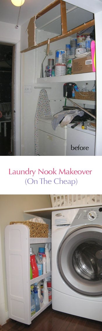 John & Sherry, this is such a great idea for the laundry room! We seem to have a similar setup, but if we get a rolling cart, that would take up the space where I usually put my ironing board. I’m curious about what you ended up doing with yours?