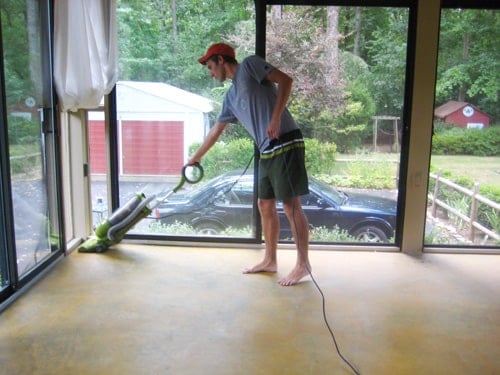 Your floor looks incredible! And, like everyone else it seems, you all have been inspirational for me during my home remodeling projects. Of course I have a question so here goes: I know that you painted your floor after you had stained it. If you are just going to paint it does it need to be etched? Or will a cement primer work as well? Thanks so much for answering all the posted questions! I was just about to ask what to do about glue on the cement and I saw that you had already answered. Fantastic!