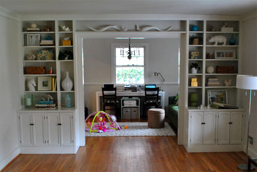 I love the built in’s! And that they frame your all’s office! I am totally recanting my impulsive nature and my recent purchase of a new home. Now I am stranded with only painting to spruce up- and lets just say Home Depot is winning in the stare-down-intimidation. I have to go get some paint swatches and get going…