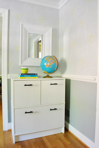 - the map is a typographic map of Richmond by a local artist (it’s actually made up entirely of words, more on that here) – I just painted the Ikea mat with the same gray paint that we used under the chair rail to help it pop