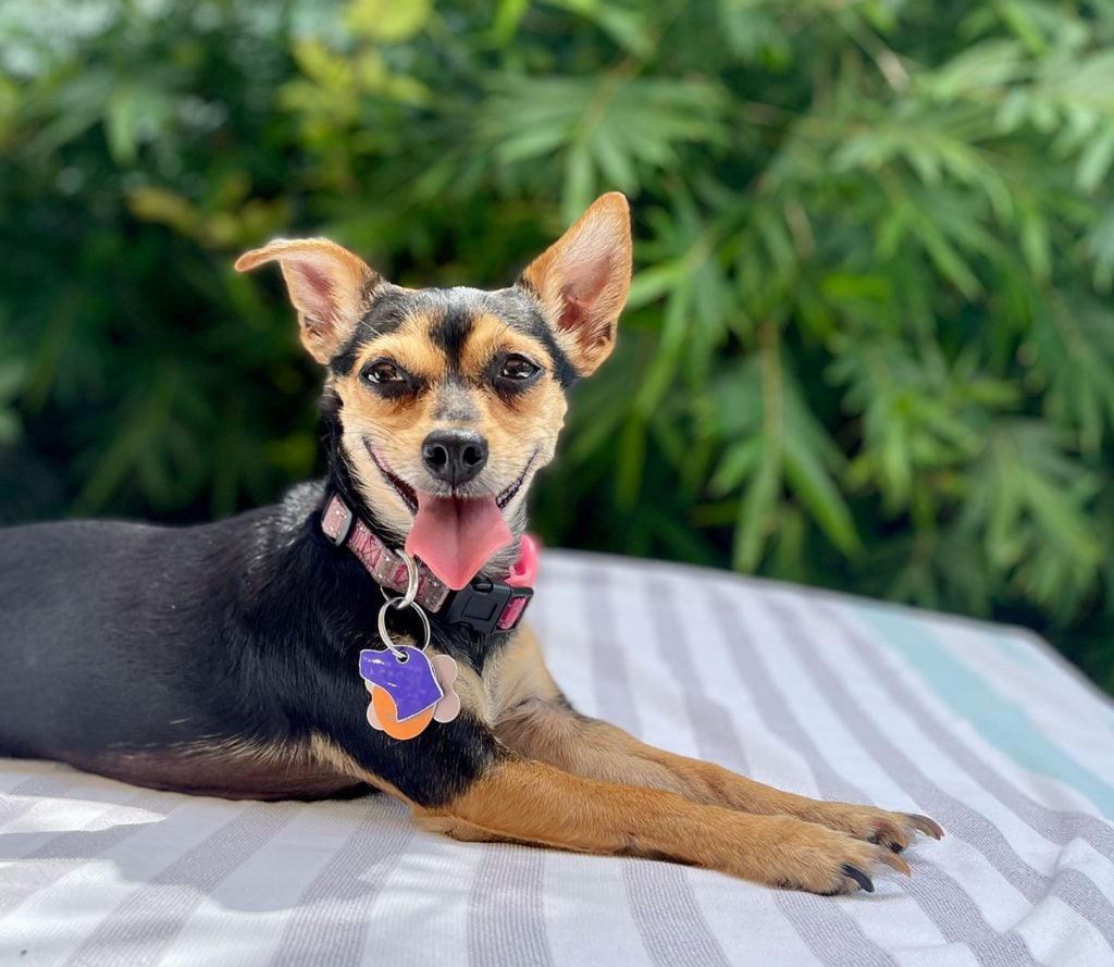 Our dog is named Penny. We wish it were less overused, but our daughter and our son picked it out (since we got Burger before they were born, it seemed fair to let them have the naming reins for this go around). We all thought an object/food/plant name (not a human name) would be fun for her, because we loved Burger’s name so much. Both of our kids shouted out random object names for an entire evening as we went to Petsmart to get supplies and then to Chipotle to grab dinner on the go. And it was there that our daughter saw a penny on the ground. We all felt so lucky to have found this sweet dog, that the idea of her being our own “lucky penny” had legs. To top it off, she has two distinct copper-colored dots on her head, which actually resemble pennies. Our son was just as into the name as our daughter, so it became official. And that’s how, despite the popularity of the name Penny, we decided it was the perfect name for her! Knowing that it was being paired with Petersik (and squeezing in a funny middle name: Parmesan) made it feel more fun.