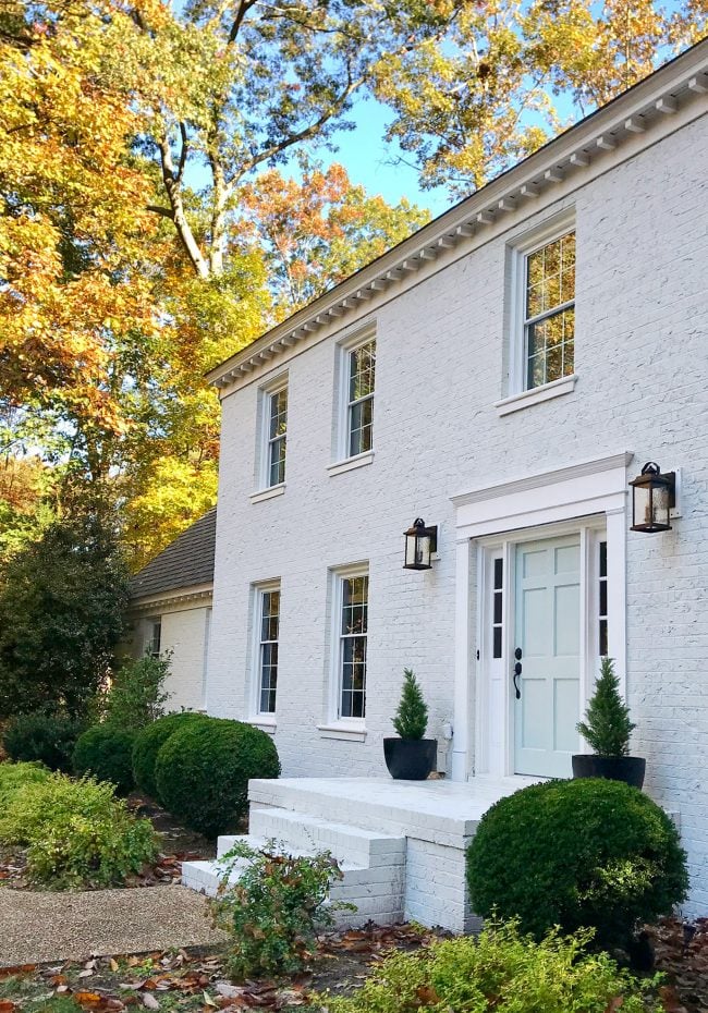 The short answer is that we wanted to. This is our third brick house and I’ve daydreamed about painting ALL of them at some point. So this is basically a 12+ year fantasy that has finally been realized. John has been interested in the idea, but he is so dang practical. So his concerns about maintenance or it showing green mildew and stuff like that have always convinced him that it was a bad idea. But after discussing it on our podcast this summer, a lot of our listeners soothed our fears (we heard from dozens of people who have lived in a painted brick house for 10+ years with zero brick maintenance) and then we found a product that gave us the confidence to go full steam ahead. More on that in a minute.